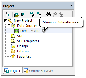 2.Click the Show in Online Browser dbs_ic_right_arrow_highlight button that appears next to the connected data source. (Alternatively, click the Online Browser tab.)