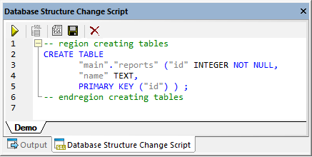 4.Select the table and press F2 to rename it to "reports". You can also right-click the table and select Rename table from the context menu. You will notice that the change script is updated accordingly.