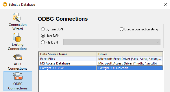 Note:You can also connect to a PostgreSQL database server directly (without the ODBC driver), see Setting up a PostgreSQL Connection.