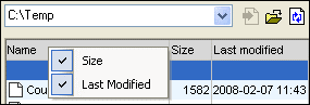 In Directory Comparison windows, you can toggle on and off the display of the Size and Last Modified columns by right-clicking the Header of either pane and then clicking Size and/or Last Modified.