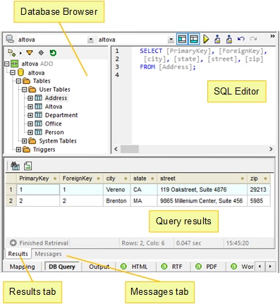 The DB Query pane allows you to directly query any major database. You can work with multiple active connections to different databases. For more information, see Browsing and Querying Databases.