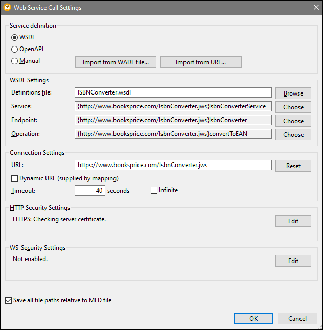To test the WSDL settings, you can use the sample .wsdl files that are available in the MapForce Example folder:
