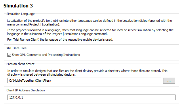 If the design references files on the client device, then these files will not be accessible during simulations. During simulations, the folder specified in this option will be looked up for client-side files. If client-side files are saved here with the same name as that with which they are referenced in the design, then they will be correctly accessed during simulations.