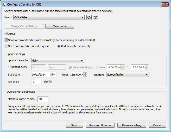 Update cache periodically: Select to specify the frequency with which the cache should be filled.