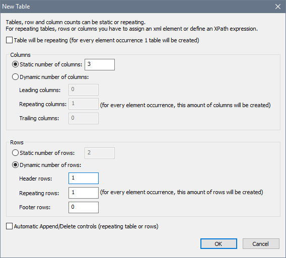 To insert a table that has the properties described above, add a table control with the same specifications as those shown in the screenshot below.