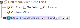 •If the Action Group of the server action library is designed to carry out actions on the server (that is, independently of the calling solution and client device), then it will not have a return value to send to the calling solution. As a result, the Action Group needs only to be called at the point where it is needed; a Let action is not needed. In this case, simply drag the Action Group of the server action library to the point where it should be executed in the processing of an event's actions (see screenshot below).