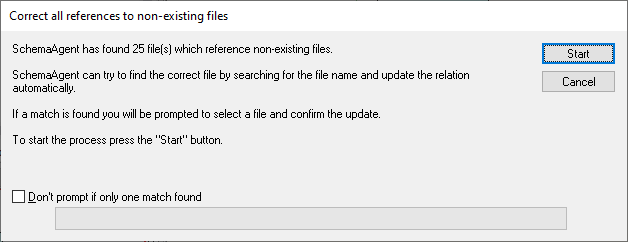 2.Optionally, select the Don't prompt if only one match found check box if you want paths corrected automatically when only one alternative path is found.