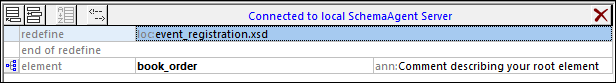 In this section, you will learn how to redefine a type from one schema in another schema. You will also learn how to add a new element to a redefined type. This is also done in XMLSpy. For the purpose of this tutorial, we will use the schema book_order.xsd as an example.
