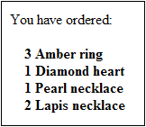 <Item partNum="748-OT" quantity="1" shipDate="2000-02-14" comment="Valentine's day packaging."/>