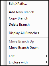 To create a new branch, right-click any branch of the condition and select Add New Branch from the context menu. The Edit XPath Expression dialog will pop up. After entering an XPath expression and clicking OK, a new empty branch is added to the condition. This is indicated in the design by a new cell being added to the condition; the new cell has a number incremented by one over the last branch prior to the addition.