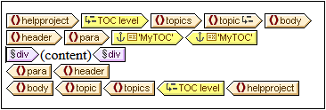 1.Structuring the design document in a hierarchy of nested TOC levels. A TOC level can be created in the design either on a template or around a design component. In the screenshot below, a TOC level has been created on the topic template