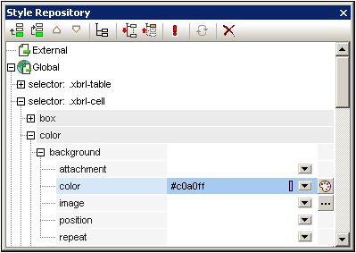 1.In the Style Repository sidebar, expand that selector for which properties are to be modified (see screenshot below).