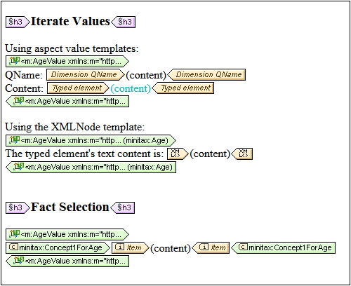 •The third template selects all Concept1ForAge concepts that have a typed element as defined in the typed dimension template. The Item template within the concept template returns that concept's value.