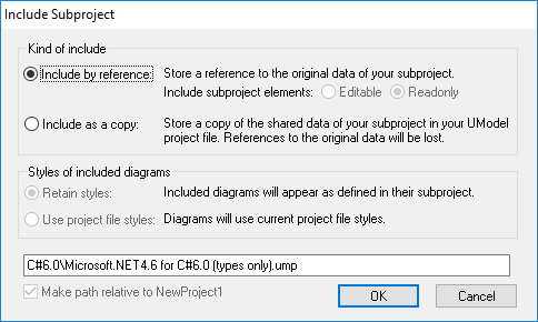 4.When prompted to select the kind of include (by reference or as a copy), leave the default option as is.