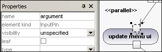 Inserts an Activity Parameter node onto an activity. Clicking anywhere in the activity places the parameter node on the activity boundary.