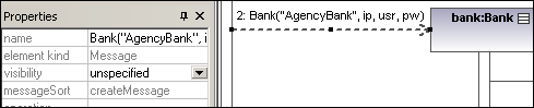 1.Create a message between two lifelines, the receiving object being a class lifeline (Bank). As soon as you drop the message arrow, the message name is automatically highlighted.