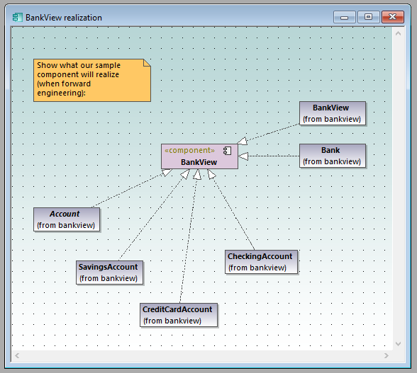 Whenever you create a new diagram, or open an existing one, a new Diagram window is loaded in the Diagram Pane. The diagram window provides the canvas (drawing area) where you design UML diagrams. Various modeling commands are available when you right-click either the diagram canvas itself, or any element on it.