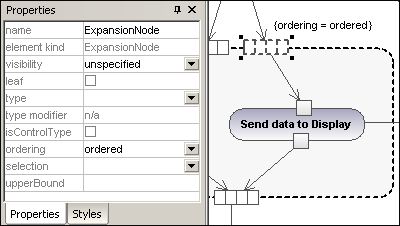 Inserts an Activity Parameter node onto an activity. Clicking anywhere in the activity places the parameter node on the activity boundary.