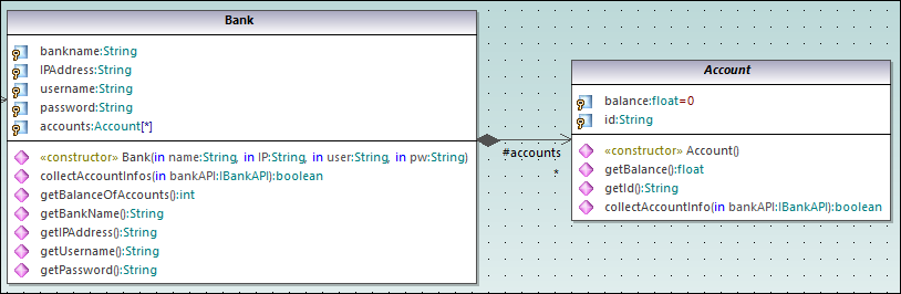 Creating a composition association between the Bank and Account classes