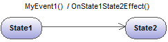 When "MyEvent2()" occurs in the sample above, the state machine implementation calls "OnExitState3()". If "MyEvent2" would have an Effect, it would be subsequently called, then "OnEntryState4" and "OnDoState4" would be called.