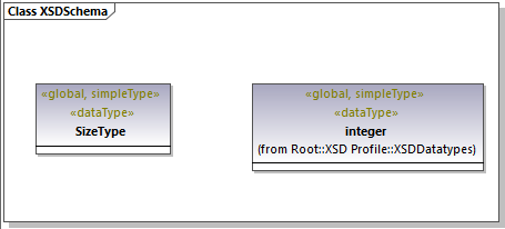 The following steps create the SizeType simple type to the XML schema. This is a type that restricts the base xs:integer type; therefore, we will add the base type to the diagram as well, and create a restriction relationship.