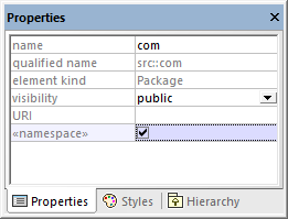 If you validate the project at this stage, the Messages window displays a validation error ("No Namespace Root found! Please use the context menu in the Model Tree to define a Package as Namespace Root"). To resolve this, let's assign the package "src" to be the namespace root: