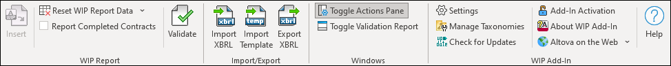 Generates an XBRL WIP instance file from the data entered into the WIP report. See Export Data to XBRL.