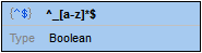 A pattern property (screenshot below) defines the property's name as a regular expression. In the screenshot below, for example, the regular expression specifies that the property must: (i) have a name that begins with an underscore, and (ii) have a boolean as its value. There is no requirement constraint for a pattern property. You can add any number of pattern properties. Notice the icon for pattern properties.