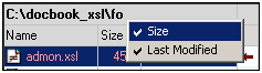 The Size and Last Modified can be toggled on and off by right-clicking on either file titlebar and clicking Size and Last Modified.