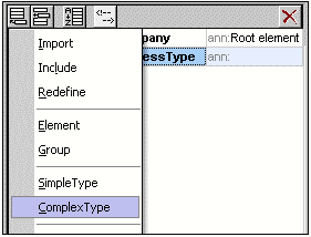 3.Select ComplexType from the menu. A new line appears in the component list, and the cursor is set for you to enter the component name.