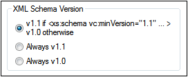 You can switch between the two application-wide modes (Version 1.0 and Version 1.1) at any time by selecting the option you want in the XML Schema Version setting of the Options dialog (screenshot above).
