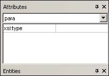 Below the combo box, a list of valid attributes for that element is displayed, in this case for para. If an attribute is mandatory on a given element, then it appears in bold. (In the example below, there are no mandatory attributes except the built-in attribute xsi:type.)
