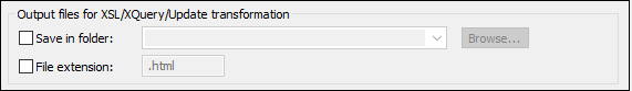 •Default file extension: Sets a default file extension for output files, which can be overridden by the file extension named in the XSLT element xsl:output (see last list item).