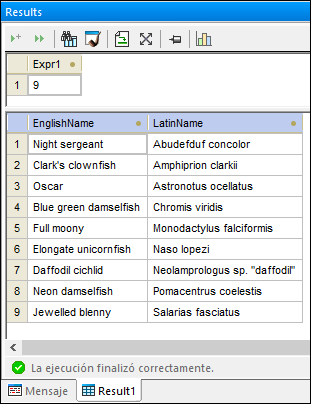 Siempre que ejecute una consulta que devuelva resultados de la BD esos datos se cargan en la ventana Resultados, por ejemplo: