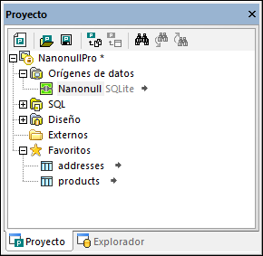 En la ventana Proyecto el objeto favorito tiene un icono en forma de flecha. Cuando se hace clic en esta flecha, se abre la ventana Explorador y en ella aparece seleccionado el objeto favorito. Recuerde que en Favoritos también puede guardar bases de datos, esquemas o columnas de tabla.