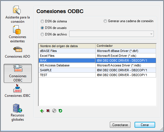 Para ver una lista de bases de datos compatibles con la aplicación consulte el apartado Consulta de BD | Bases de datos compatibles.