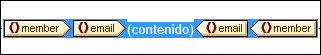 4.Haga clic en Aceptar. Se crea el marcador de posición (contenido). Si el nodo seleccionado no es el nodo de contexto, alrededor del marcador (contenido) se crean etiquetas de plantilla adicionales con la ruta de acceso del nodo seleccionado.