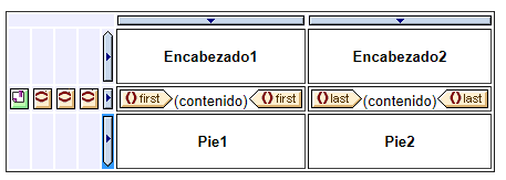 •En las tablas cuyo tamaño aumenta de arriba a abajo (imagen anterior) los indicadores de encabezados y pies de tabla son iconos que apuntan hacia arriba y hacia abajo respectivamente. En las tablas cuyo tamaño aumenta de izquierda a derecha, los indicadores de encabezados y pies de tabla apuntan hacia la izquierda y hacia la derecha respectivamente (imagen siguiente)