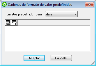 •El orden de las cadenas de formato en el cuadro de diálogo "Cadenas de formato predefinidas" determina el orden en que esta cadenas aparecen en el cuadro de diálogo "Formato de valor". Las cadenas de formato personalizadas aparecen antes que los formatos predefinidos que vienen con StyleVision.