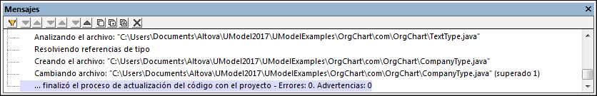 Nota: el código Java de muestra que se utiliza en este apartado está en un archivo ZIP en la ruta de acceso C:\Usuarios\<usuario>\Documentos\Altova\UModel2026\UModelExamples\OrgChart.zip. Antes de empezar el tutorial deberá descomprimirlo en el mismo directorio.