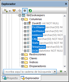 2.Busque en el Explorador la tabla tblZookepers y, manteniendo pulsada la tecla Ctrl, seleccione todas sus columnas menos ZooID.