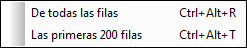 Este submenú ofrece comandos para realizar una consulta en la tabla seleccionada en el Editor de diseños.