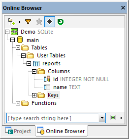 2.Haga clic en el botón Mostrar en el explorador dbs_ic_right_arrow_highlight que aparece junto al origen de datos conectado. (También puede hacer clic en la pestaña Explorador.)