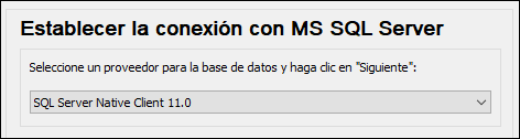 2.Seleccione la opción Microsoft SQL Server (ADO) y haga clic en Siguiente. Ahora aparece la lista de controladores ADO disponibles. En este ejemplo usaremos como proveedor SQL Server Native Client 11.0, pero puede usar también Microsoft OLE DB Provider for SQL Server si lo prefiere.