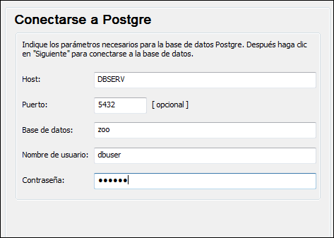 Si lo que quiere es configurar una conexión nativa con PostgreSQL, siga las instrucciones que aparecen más abajo. El único requisito es conocer el nombre de host, el puerto, el nombre de la base de datos, el nombre de usuario y la contraseña.