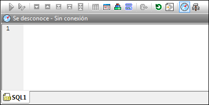 Puede abrir una ventana nueva del Editor SQL haciendo clic en el botón Editor SQL ic_new-sql-editor de la barra de herramientas Estándar o con el comando de menú Archivo | Nuevo/a | Editor SQL (Ctrl+N).