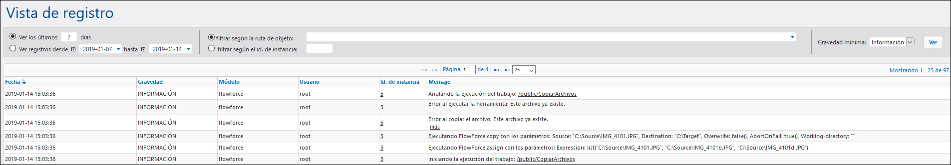 En este ejemplo explicamos cómo copiar varios archivos en el sistema local de archivos con ayuda de un trabajo de FlowForce Server.