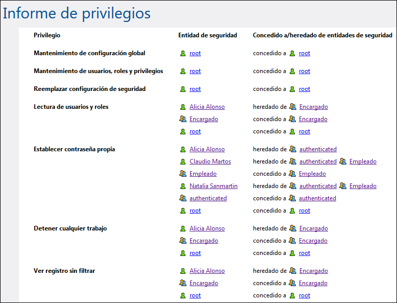 Para más información sobre los privilegios disponibles, consulte el apartado Privilegios.