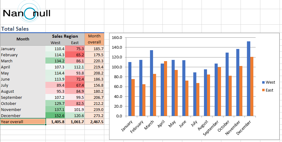 Para seleccionar la hoja de trabajo de destino haga clic en el botón excel1-compicon que hay junto al nodo "Sales" (aquí, "Sales" es el nombre de la hoja de trabajo).