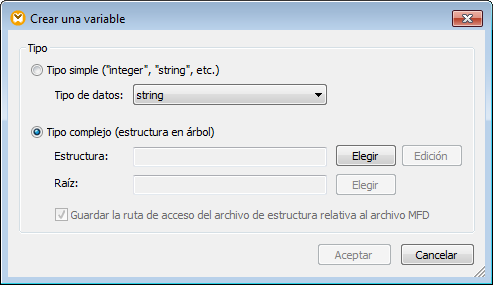 2.Seleccione el tipo de variable que quiere insertar (de tipo simple o complejo).